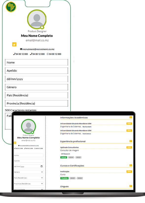 Actualize o seu perfil com todos seus seus dados verdadeiros que queira partilhar para concorrer as nossas vagas.